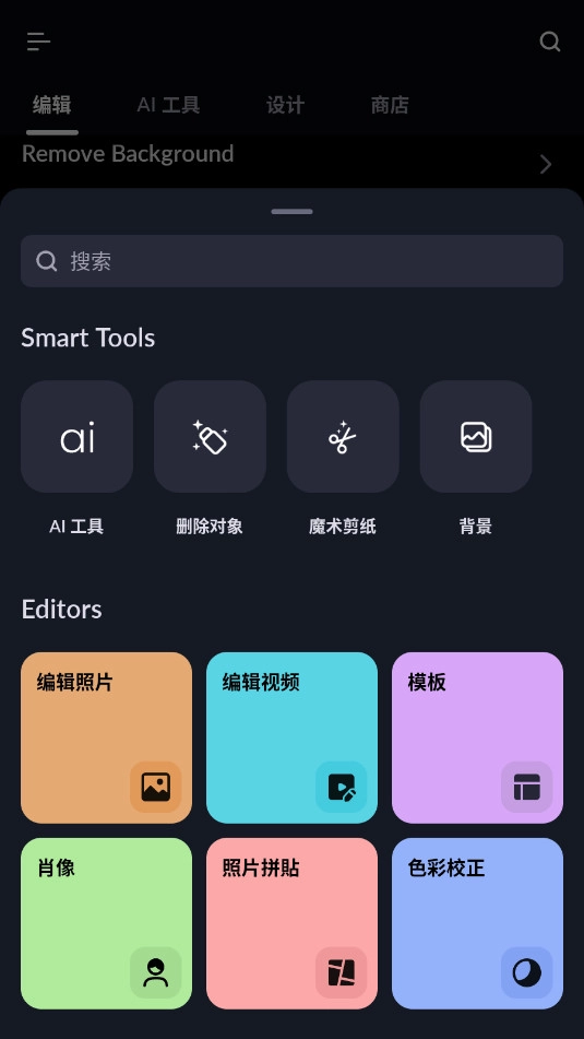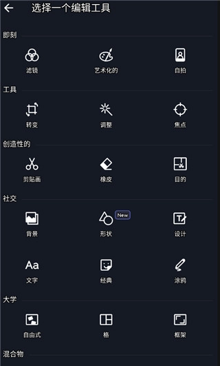 2、依据自身需求,从修图、调色、合成等功能中,挑选你要使用的功能,并选择与之适配的工具。