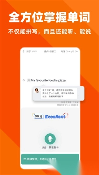 2.配备了系统语音测评功能,能够对学生所念英文单词的发音进行分析,并给出恰当的评分以及提供提升的空间。