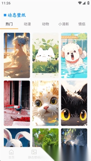 2. 为你推荐各类静态壁纸,风格多样,动漫、宠物、小清新、游戏壁纸等一应俱全。