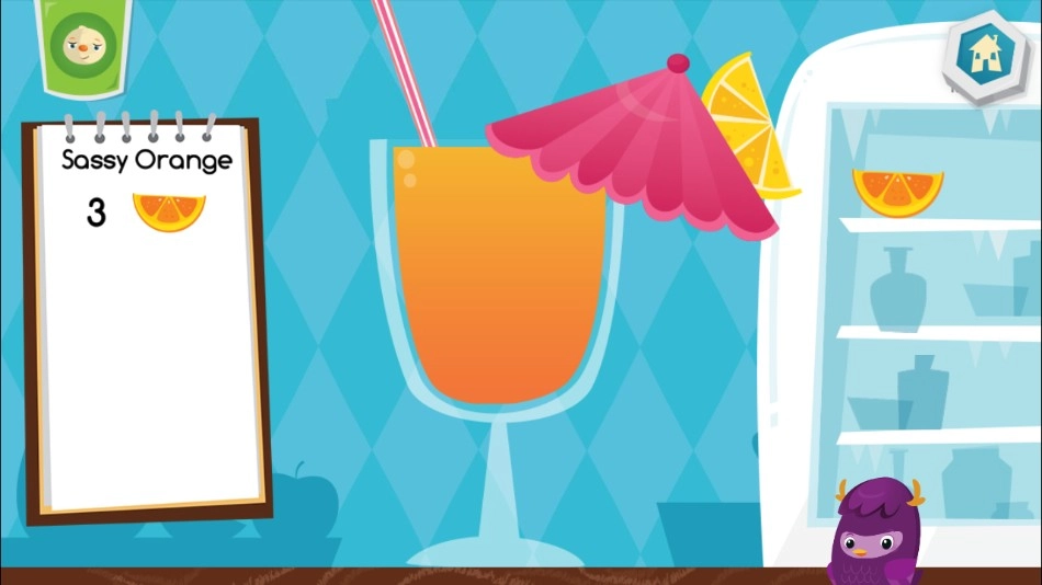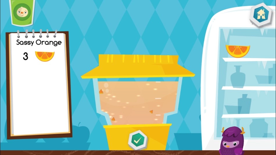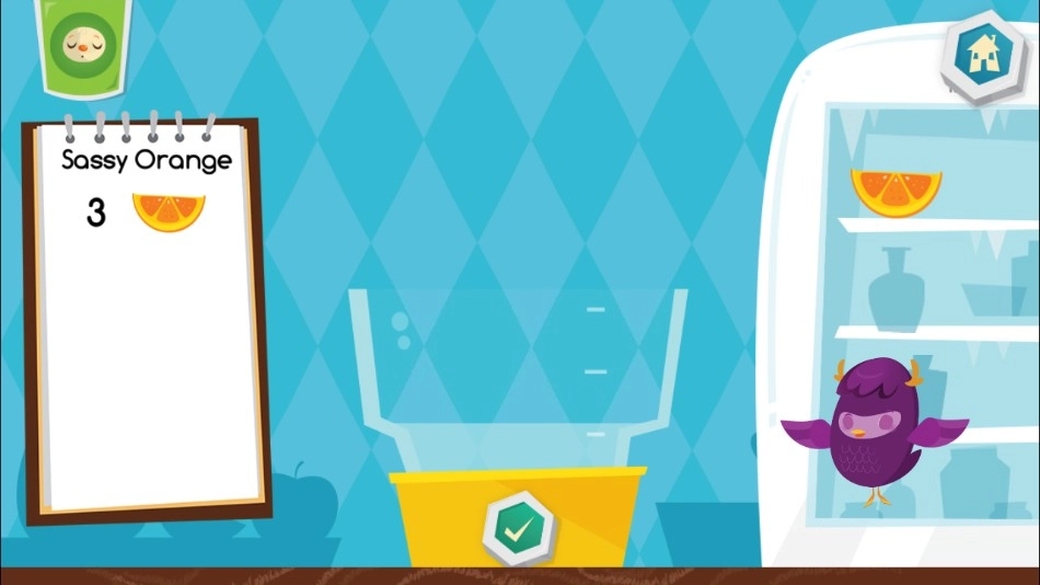 5、左侧呈现了孩子的任务,孩子需依据该任务把水果放进榨汁机里。