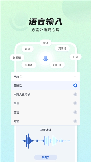 1、【智能语音输入】无需切换,语音输入支持中文英语混合输入,效率超高。