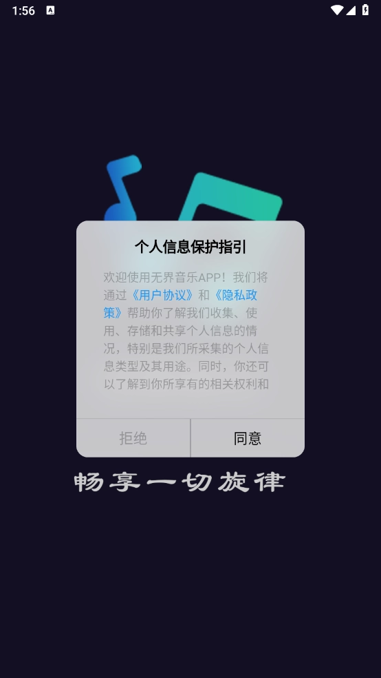 1. 第一步,在本站安装无界音乐,并同意相关政策与协议。