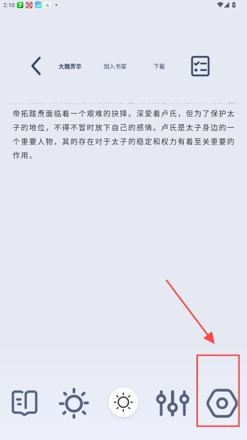 1. 在小说阅读页面里挑选设置