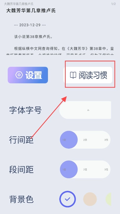 2、随后在设置中挑选阅读习惯