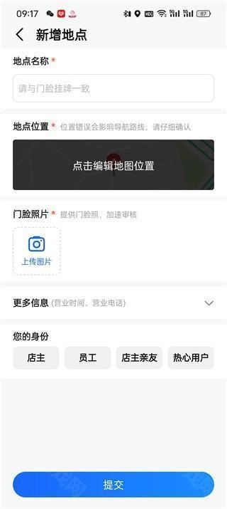3、最后点击后,在新增地点页面设置好位置,接着点击页面下方的【提交】按钮即可。