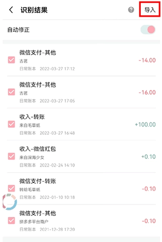 4、完成识别后,确认账单准确无误,点击【导入】即可。