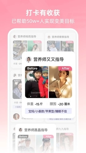 在BetterWe星球,你能够知晓每一位蜕变成功的学员(已征得用户同意)每日的饮食情况,以及他们所发生的变化。你也可以与他们一同,共同迈向更好的自己。