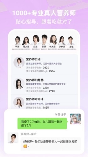 4、【健康饮食指导】有真人营养师为你传授方法,让你既能吃得饱,又能实现完美蜕变。