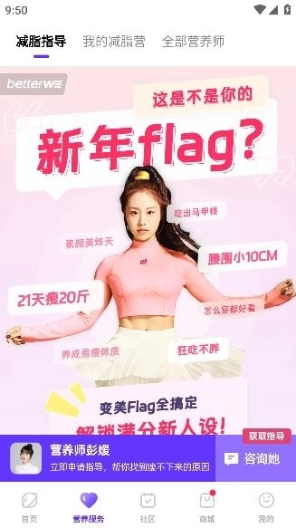 1在BetterWe星球在线,用户能够在此制定适宜的减肥方案,助力更好地达成减肥目标。