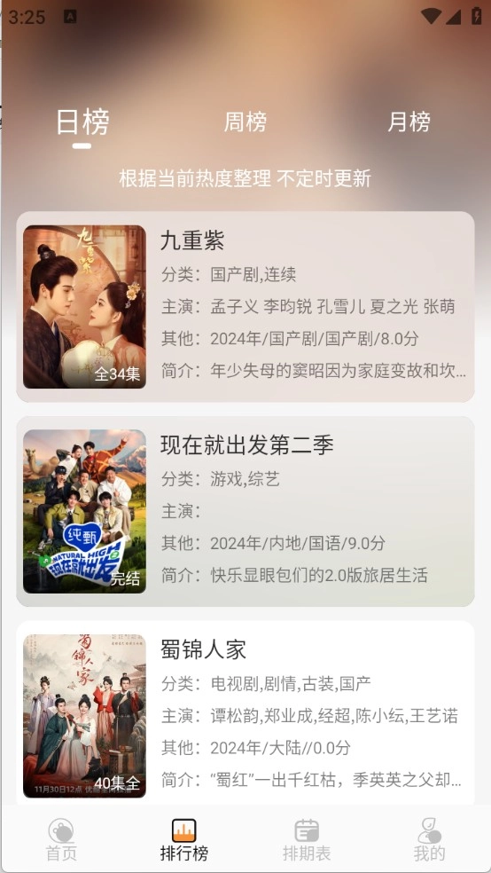 4、排期表每日都会提供更新的影视内容。