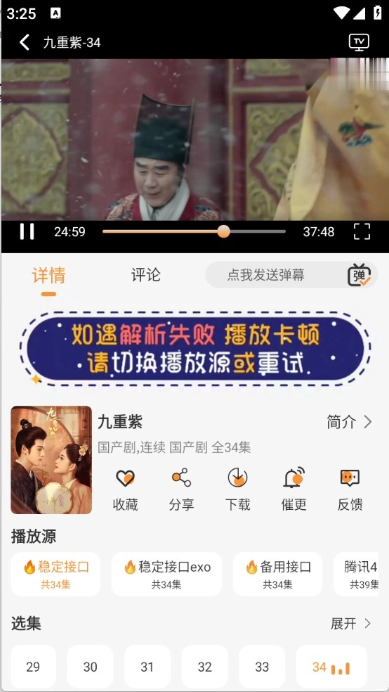 6、用户点击打开想看的影片,接着选择集数以及播放源即可。