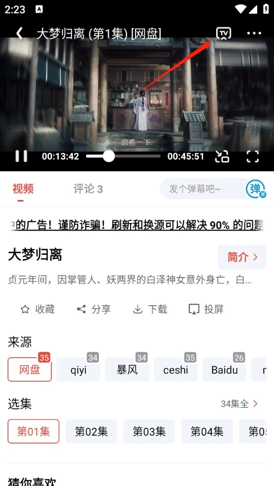 2、轻松流畅地开启电视作品的播放与观看,高清画质随心切换,免费畅享优质视频。