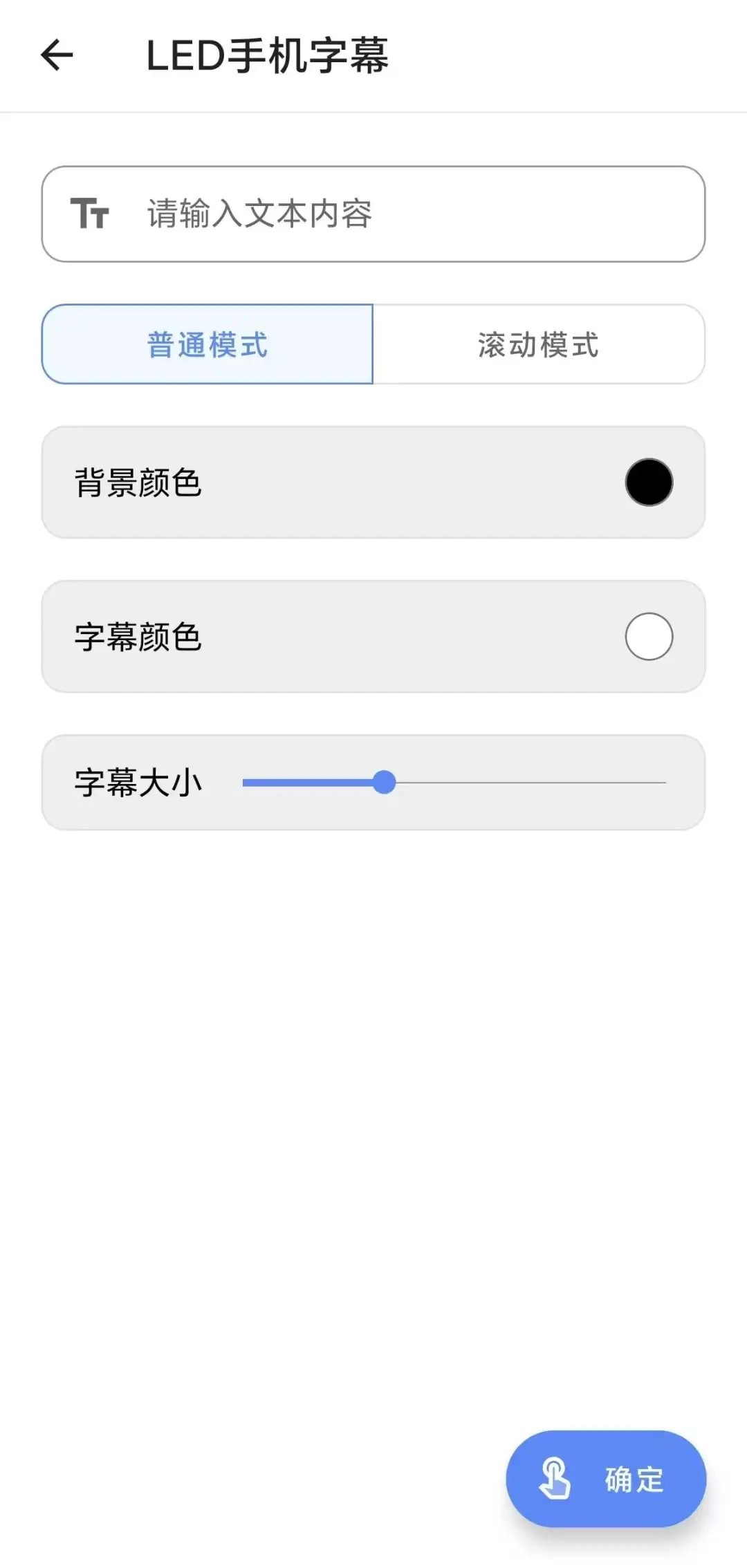 只要输入需要展示的字幕文件,并对模式以及字体字号进行设置,手机屏幕便可摇身一变成为一个LED显示屏。