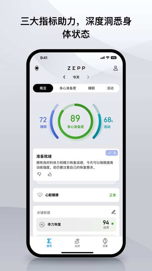 3、Zepp安卓版本能够给予活力改善方面的运动指导,借助PAI个人活力指数可对个人活力状态进行科学评估,从而使得分析指导更为详尽。