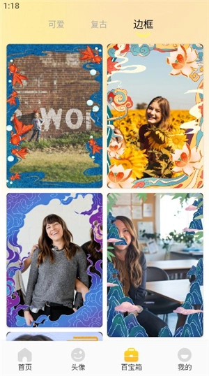 3、最后,用户能够导入照片,同时添加各类边框装饰来实现美化。