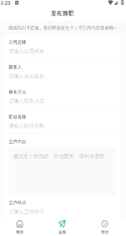 进入发布界面,依次填写信息与兼职工作内容,完成后便可提交。