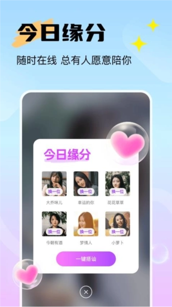 1、智能速配,邂逅今日有缘人:系统凭借智能分析,精准为你推荐契合度最高的对象,让你毫无负担地开启畅聊之旅。