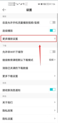 2、随后,点击“更多播放设置”选项。