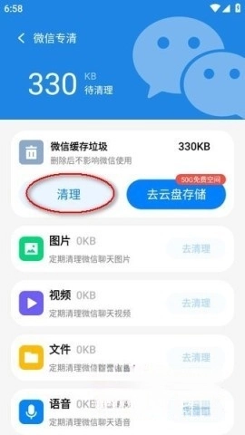 4. 此外,微信清理主要是针对微信产生的垃圾,在选择不需要的文件后,同样能够进行清理。