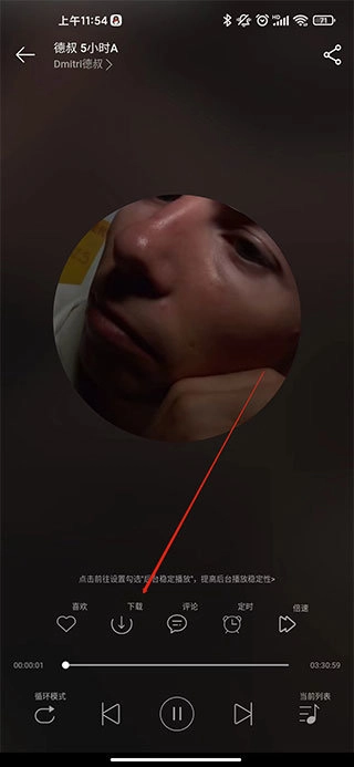 2、在播放页面,除了在线试听外,还可以通过点击“”按钮将喜欢的歌曲保存到本地。