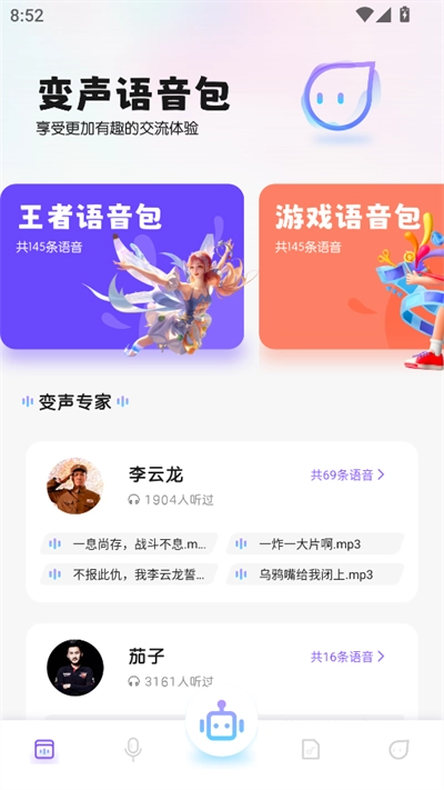 葫芦变声侠最新版是款非常流行的语音包变声器,能够轻松实现多种声音效果,满足用户在娱乐和社交中的各种变声需求,任意变声适用的聊天场景广泛, 让每次聊天变得更有趣,欢迎!