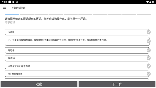 2、用户不仅能够教小鸡机器人一些它不了解的问题,还能借助软件所提供的“摘引”功能,查看其他用户与小鸡机器人的趣味对话。