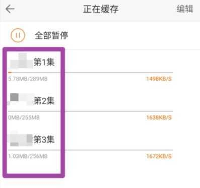 4、在软件的缓存中心,就能看到正在缓存或者已经缓存好的视频,借助右上角的编辑选项可以进行管理。