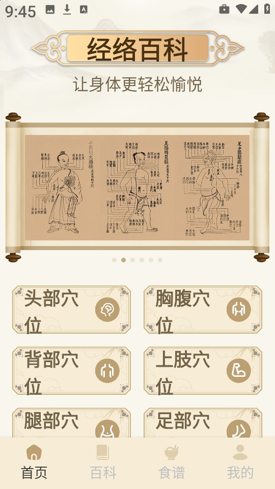 2、当成功进入首页,便能看到身体各部位的穴位。
