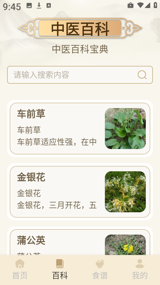 4、接着点击下方的“百科”,在此处能够直接输入关键字,搜索你所需的中医百科内容。