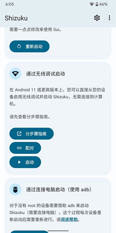 Shizuku 可通过以下三种方式启动。