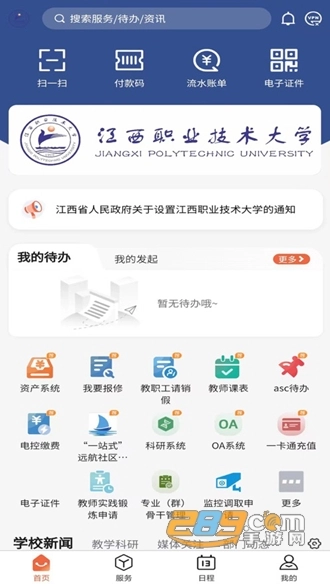 慧通江职App面向江西职业技术大学的在校师生,提供涵盖校园生活、学习以及办公等方面的服务。这款软件设有服务、事务、日程等多个功能板块,能够让用户体验到更加智慧、便捷的校园生活、学习与工作。