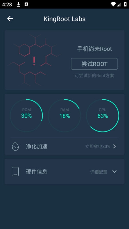 【极致省电】优化应用处理机制,相较于同类一键root软件,可实现90%的电量节省。