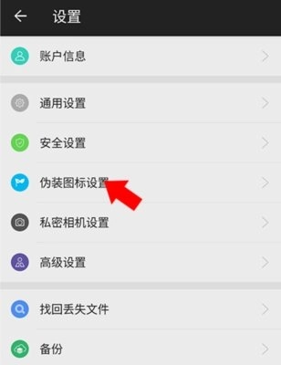 3、在设置界面中选择“伪装图标设置”