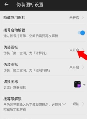 4、进入下方界面后,点击开启“伪装第二空间为计算器”这一选项。