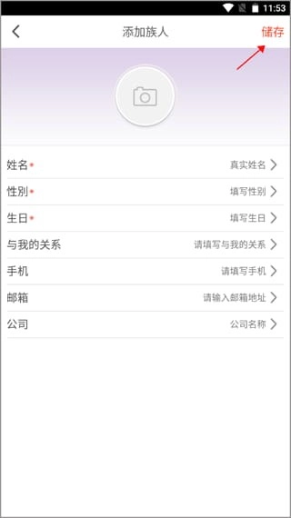 输入族人自身的基本信息以及与用户的关系,填写完毕后,即可点击右上角的“储存”按钮,这样族人就成功添加了。