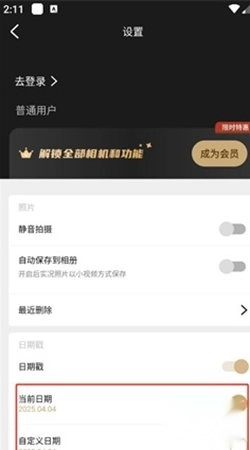 2、在日期设置中,取消当前自动日期选项,选择自定义日期。