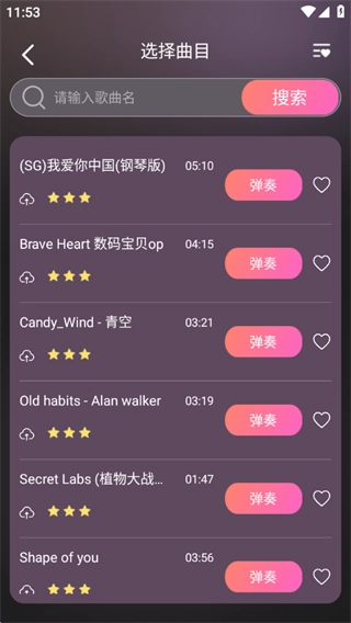 你可以搜索不同的曲子,也可以进行不同的弹奏。