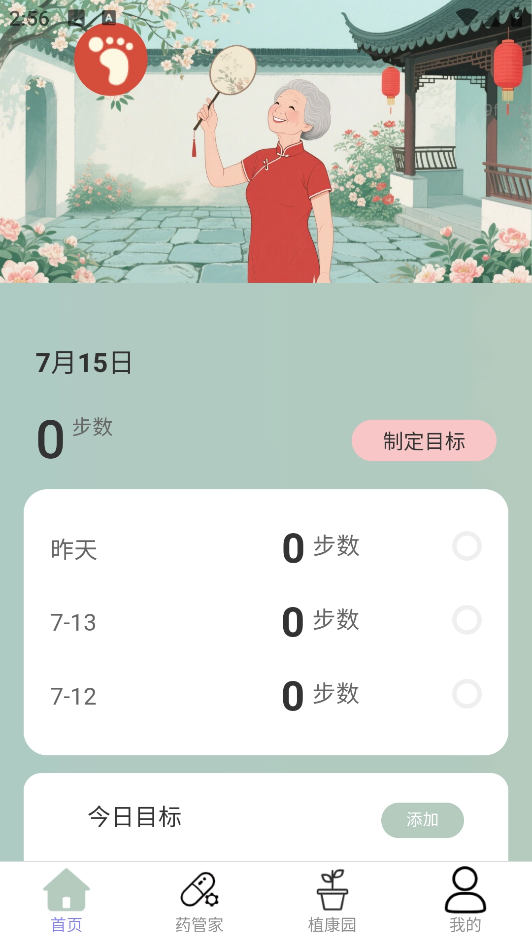 在首页可以看到最新的步数统计数据,也能够手动设置今日的步数目标。
