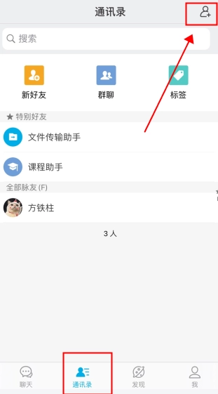 首先在通讯录中点击右上方的添加符号