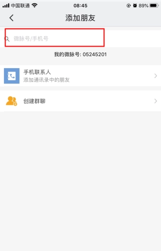只需输入对方的手机号码或微脉号,搜索后添加即可!