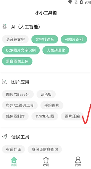 打开软件后进入首页,能看到这款软件整合了众多实用功能。下面以图片相关功能的使用为例,先点击“图片压缩”选项,接着登录您的账号即可。