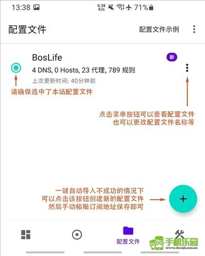 为了保证节点配置文件始终处于最新可用状态,需要不定期更新节点订阅。具体操作步骤如下:首先进入配置文件页面,接着点击屏幕右侧的三点图标,在弹出的选项菜单里选择“检查更新”,稍作等待后,节点订阅的更新工作就完成了。