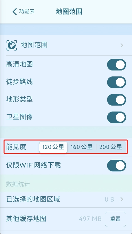 在“地图范围”页面中,你可以依据自身需求对地图的“能见度”进行调整与选择。