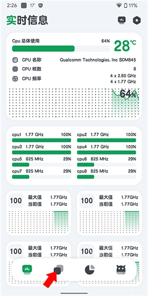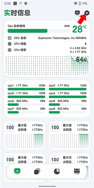 CPU监测功能支持实时追踪CPU的温度与频率变化,还能对其历史使用数据展开分析。用户可同时监控多核CPU的频率情况,并且能够查看各个应用的CPU温度排名情况。