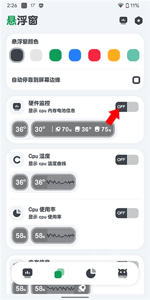 接下来,依据您的需求,打开对应的硬件检测悬浮窗,并且授予软件悬浮窗权限就可以了。