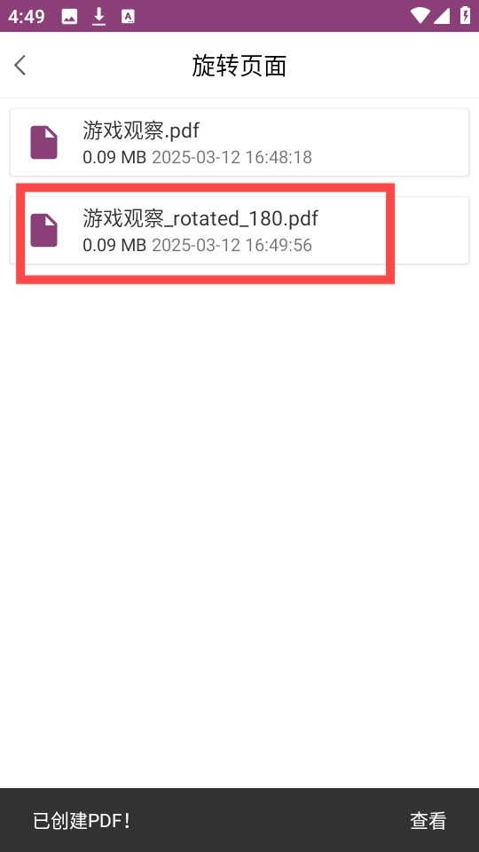 若需添加水印,可在首页向下滚动至已创建的PDF区域,也能从左向右滑动打开选项菜单,随后点击添加水印选项即可。
