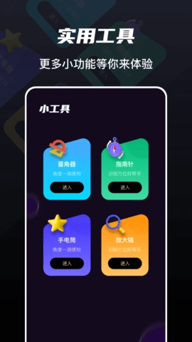 Sans助手是一款功能丰富且实用便捷的工具软件,集成了量角器、指南针、手电筒、放大镜等多种常用工具功能,用户无需额外设置即可直接使用。此外,它还配备了精致的小组件以及倒数日、手机使用舒适度优化等实用功能,全方位满足用户的多样化需求。快体验功能能够帮助用户更迅速地熟悉并使用各类功能,进一步提升操作便捷性。无论是清理手机内存、一键完成截屏与录屏,还是开启夜间模式、启用防蓝光功能,Sans助手都能为用户提供便利,有效保护手机使用体验。