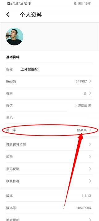 2、在设置界面找到另一半,点击进入查看。