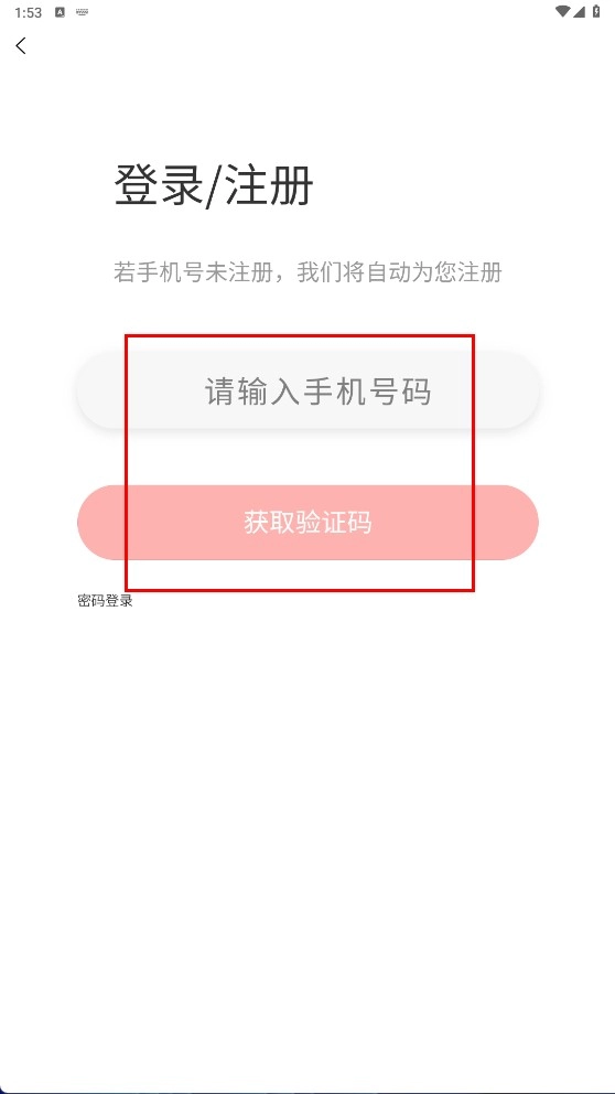 4、若选择其他号码登录,需先输入手机号码,接着点击【获取验证码】,在填写好验证码后,即可完成登录或注册的流程。