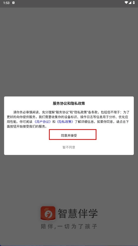 1、在服务协议与隐私政策页面,点击【同意并接受】按钮,即可进入体验阶段。
